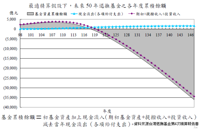 2009~2059年公務人員退撫基金個年度累積餘額狀況