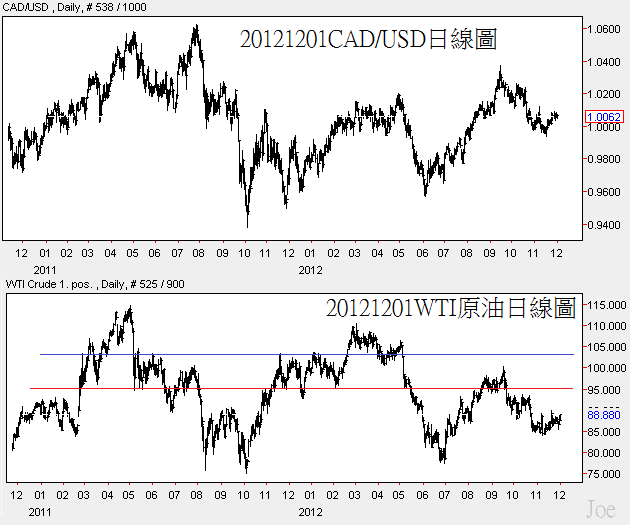 20121201CAD和原油日線圖